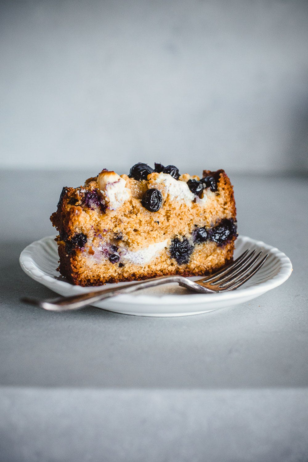 Often when you bake with berries, the biggest dilemma is how to keep them nicely suspended within the baked batter and not have them sinking to the bottom of the cake. Flouring the blueberries prior to adding in a standard mix-and-bake cake helps to some extent but they are still pretty much going to nose-dive in the batter.